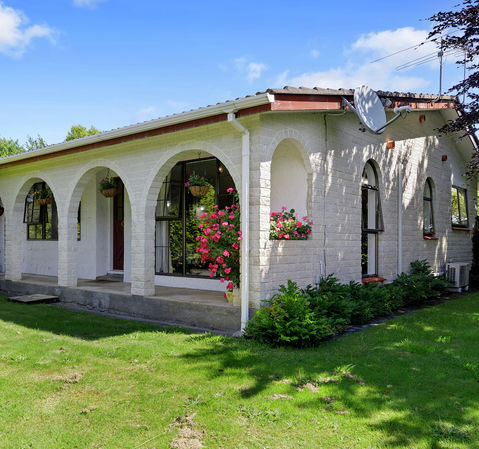 The home features a warm and inviting living and dining area, complemented by a well-appointed kitchen that overlooks beautifully established gardens—designed for year-round colour with thoughtful plantings. A modern bathroom with both a bath and separate shower ensures everyone’s preferences are catered for. Both bedrooms are generously sized and include large wardrobes.